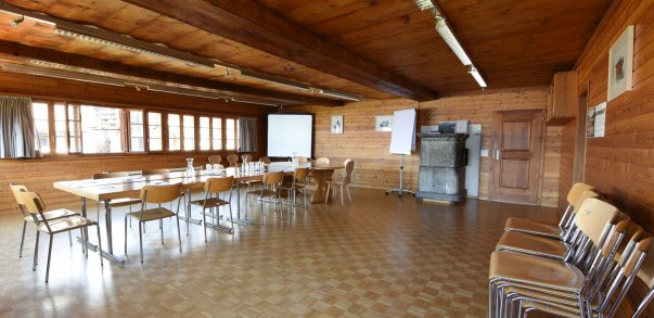 Looking for a space to hold a meeting or a retreat? The Burgerstube (7.5m x 7.5m) in the former village school at the lower edge of the village offers a beautiful valley view. A rustic vaulted cellar (ca 3m x 7m) In the same building can be rented for social occasions. There are also a playground and an outdoor seating area on a terrace facing the valley.