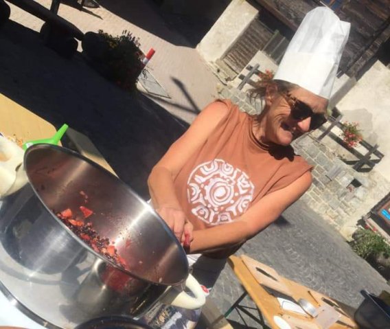«Ein DORF, das Traditionen pflegt und mit innovativen Ideen die Zukunft gestaltet (s. Bild: Workshop der Arbignon AG; «Rettet die Wildfrüchte», auf dem Dorfplatz – Holunderchutney).