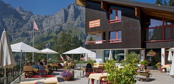 Le restaurant Flaschen se situe dans la vallée de la Torrentbahn, sa grande terrasse ensoleillée offre une belle vue dans la campagne. Au menu vous trouverez des plats de saison, diverses spécialités du chef et une large sélection de vins valaisans, des gâteaux aux fruits et aux baies, des glaces faites maison. Il offre également un menu spécial enfant et un air de jeu pour les petits.